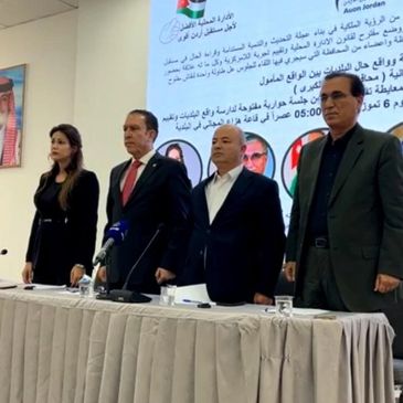 ندوة ضمت عدد من امناء العامين للاحزب منهم نضال البطاينة امين عام حزب ارادة ومحمد المومني امين عام حزب الميثاق وفوزان العبادي امين عام نهج الجديد والصحفي مدير صحيفة الدستور مصطفى الريالات والمدير التنفيذي لعون الاردن نور الدويري